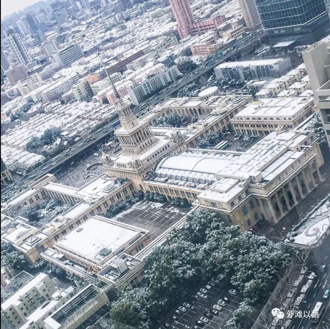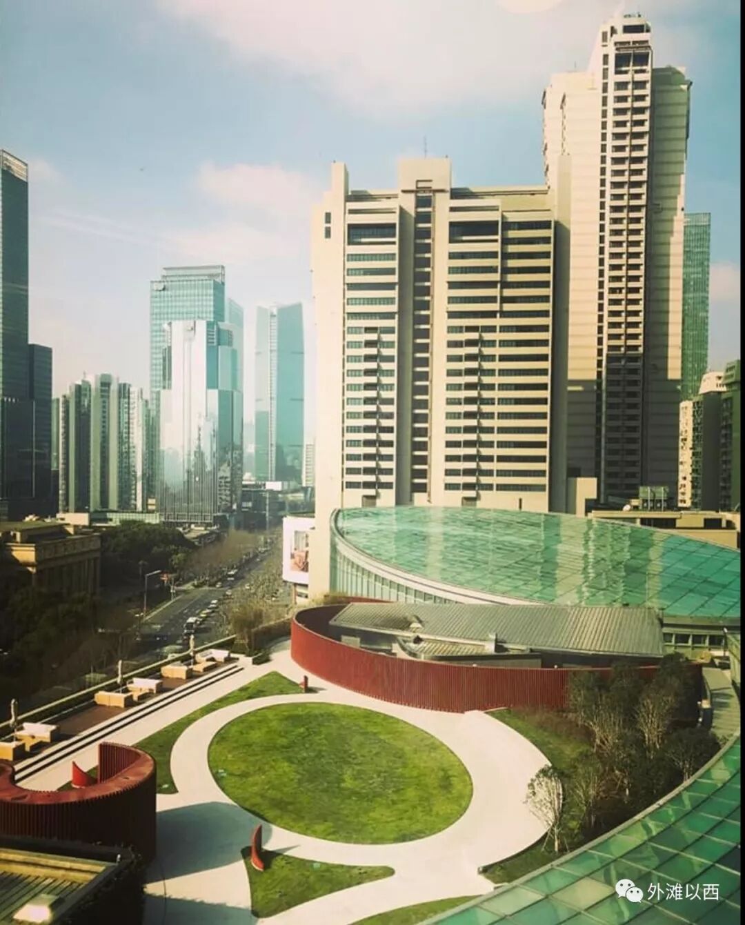 沿着陕西北路到陕西南路,上海报业大楼、城市酒店和iapm一带,最远看到了打浦桥附近的最高楼斯格威铂尔曼大酒店。