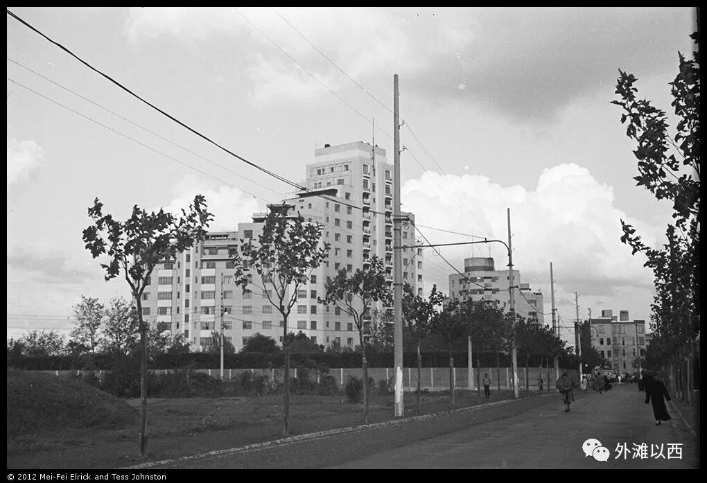 当1937年日本鬼子从黄浦江上的军舰发射炮弹,一颗炸在沙逊的南京东路华懋饭店(今天的和平饭店)、另一颗落到了大世界游乐场门口。而这些个彰显自己国家海外实力的高大建筑物在炸弹面前,法国人知道一定会千疮百孔;对上海特别市而言也意味着黄金十年的终结。毕卡第公寓算是非常幸运的,但新盘的门前垒起了沙袋筑成了战壕,如下关于毕卡第的1936年和1937年的旧影多来自哈里森·福尔曼(福曼)的摄影册。今天po出的是1936年贝当路国际社区的万事祥和的景象。