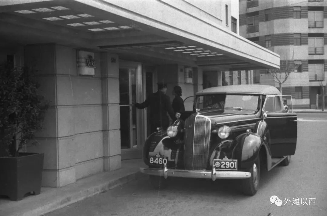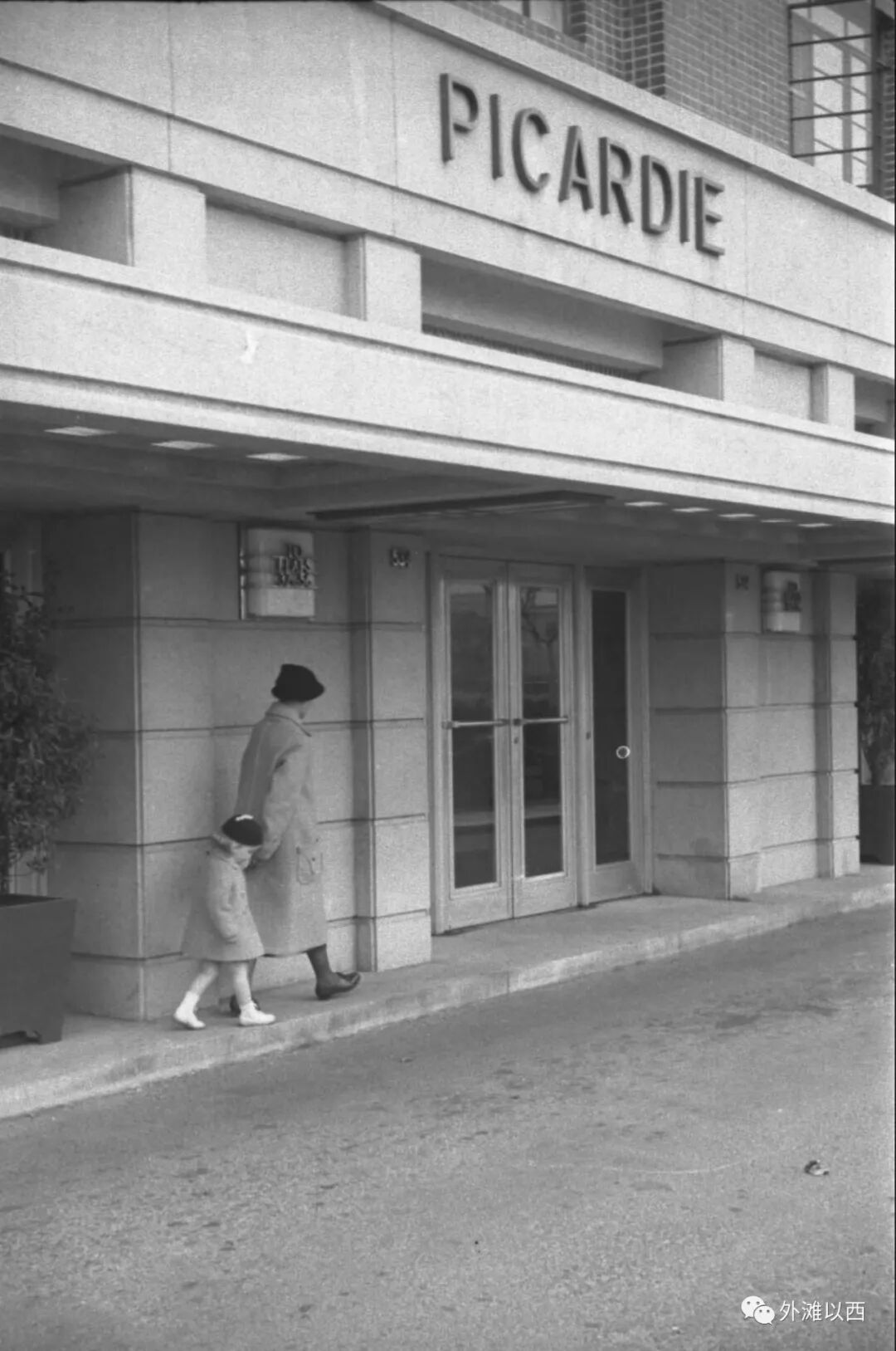 如今有个后加建的迎宾门廊太夸张,上图带毕卡第公寓名的也只有在福曼的照片里看到,原始设计的公寓门头给下车的主人不晒太阳不淋雨正正好,线条也是与整个建筑立面和谐的。福曼连拍了三张,同机位,三图出现了三组不同人物,可见1936年的上海高档住宅楼门外的寻常生活,注意看服饰,长大衣真长。