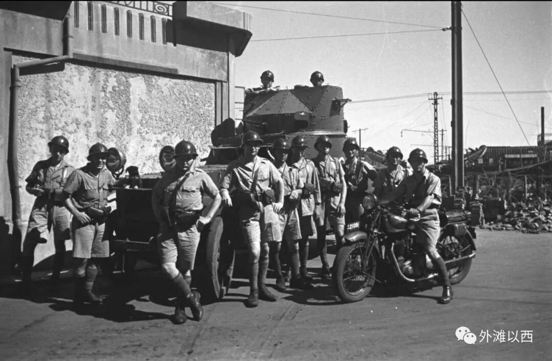 继续在八·一三的战事报道图片集里找到我们感兴趣的地方,福曼那挂着美国国旗的“采访车”路过了霞飞路,背景中没有很特征性的建筑物,仅仅路牌和铁丝网足以告诉世界这里的商业街上外侨们惶惶不安。