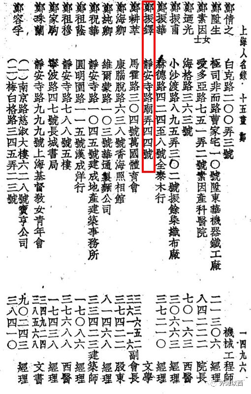 郑振铎的儿子郑尔康在《我的父亲郑振铎》回忆文章中写道:我家在地丰里(乌鲁木齐北路地丰里)住了不到一年,1936年初,父亲便将家搬到了愚园路东庙弄44号,在上海著名古刹静安寺东侧,故名之(西侧为西庙弄)。这是一座三层楼的欧式古典建筑,建于何年何月,已无从查考。他在这里居家过日子,写文章、会朋友·····在另一篇回忆文章中提到,专印珂罗版的戴圣保开了一家仅有两架珂罗版机的印刷厂,也一直替振铎印版画,后来就版到庙弄郑振铎寓所的底层·····