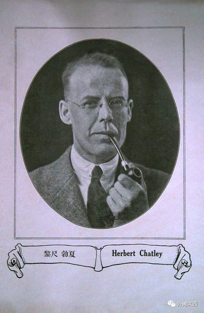 这个邻居是个有文化的英国人,来自伦敦。1924年中国诸业领袖人物小传里有记录,中英文对照,读起来就很亲切了,更多的资料来自拉库爷爷的博文,从那里我们知道他叫查得利,1924年翻译叫他“夏勃、尺黎”。下图的Chatley, Herbert 绅士派头足的风度好的,那个烟斗可能是他最爱。