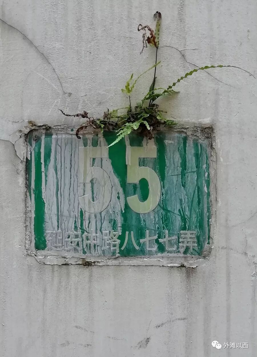 单开间新里洋房的后门有点局促和紧张,下图的门号牌墙体已经饱满了历史的风霜雨雪,缝隙里顽强诞生了绿植,野蛮地但带有插花艺术的造型感。