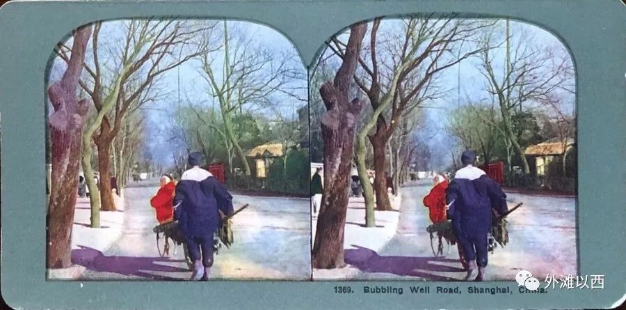 上、下两张早期静安寺门口涌泉井影像不多见吧,下图还特别指出了是1890年,看孔夫子旧书网曾挂出过清代玻璃底片的同景照片,老外郊游坐着马车来参观中国古迹。因为涌泉,这条路的外文名字叫了Bubbling Well Road,翻译得再通俗一点的话这个涌泉井就是泡泡井。