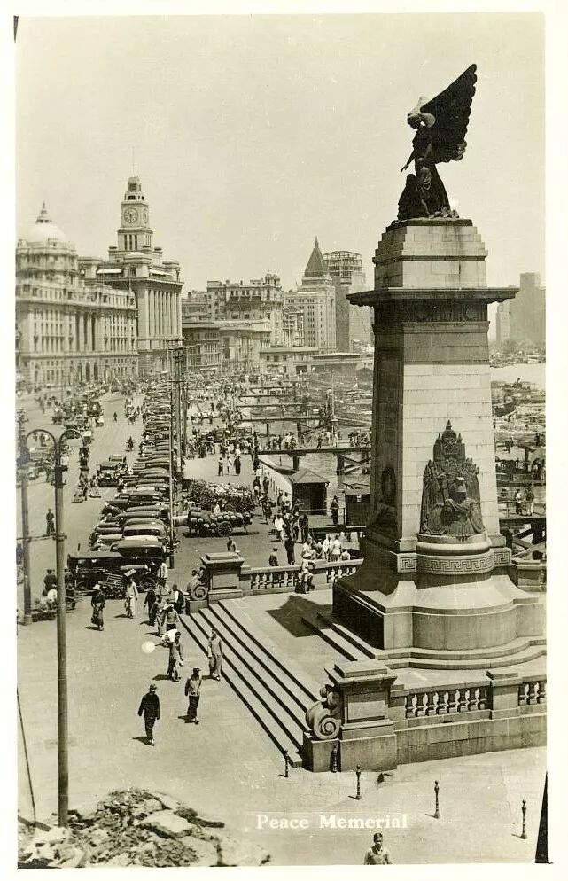 年长一些的中国人都知道刘胡兰和八个字:生的伟大,死的光荣!对的,就是这个意思,谢谢英国布里斯托大学中国历史照片图库。University of Bristol - Historical Photographs of China reference number: JC-s111. First World War memorial designed by Henry Fehr.The figure of the 'Angel of Peace' on the top of the war memorial, as well as the bronze wreath, branch and side panels were removed by the civil authorities, after Japanese pressure, in September 1943. Inscription: AD MORTUORUM GLORIAM MCMXIV MCMXVIII (i.e. To the Glorious Dead 1914-1918)