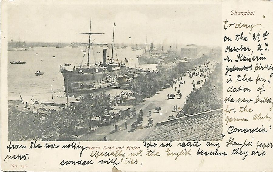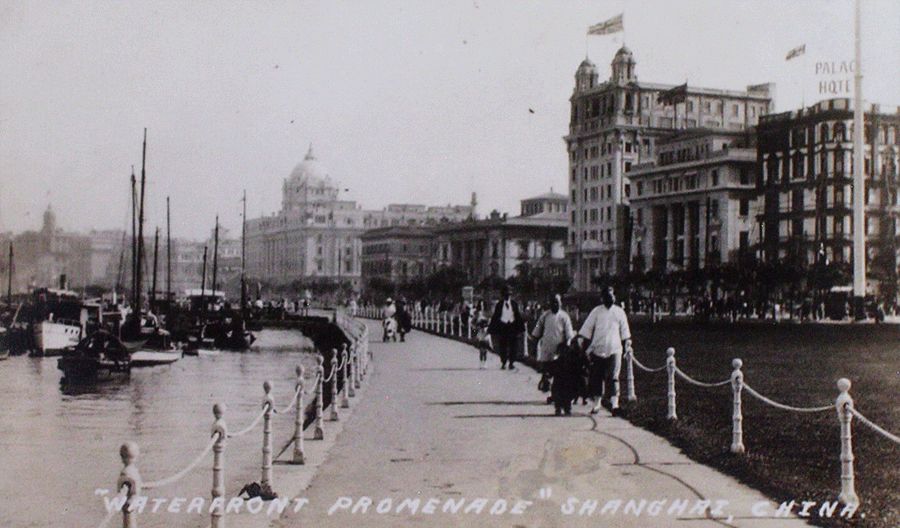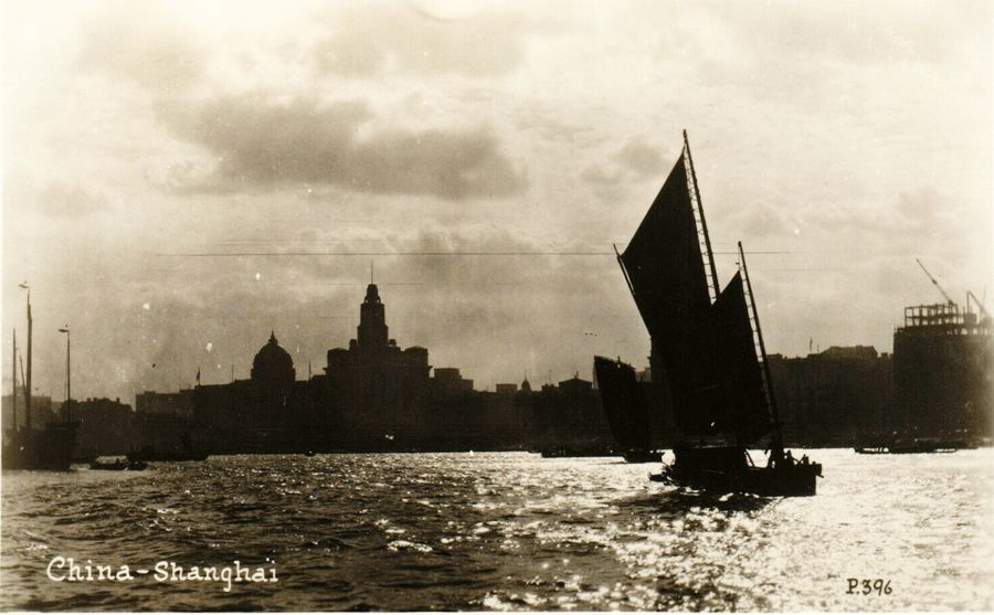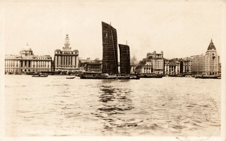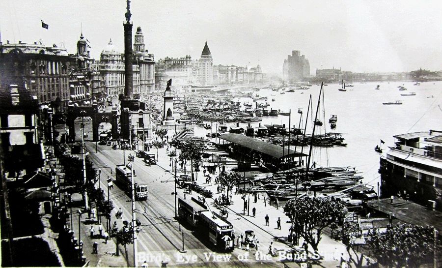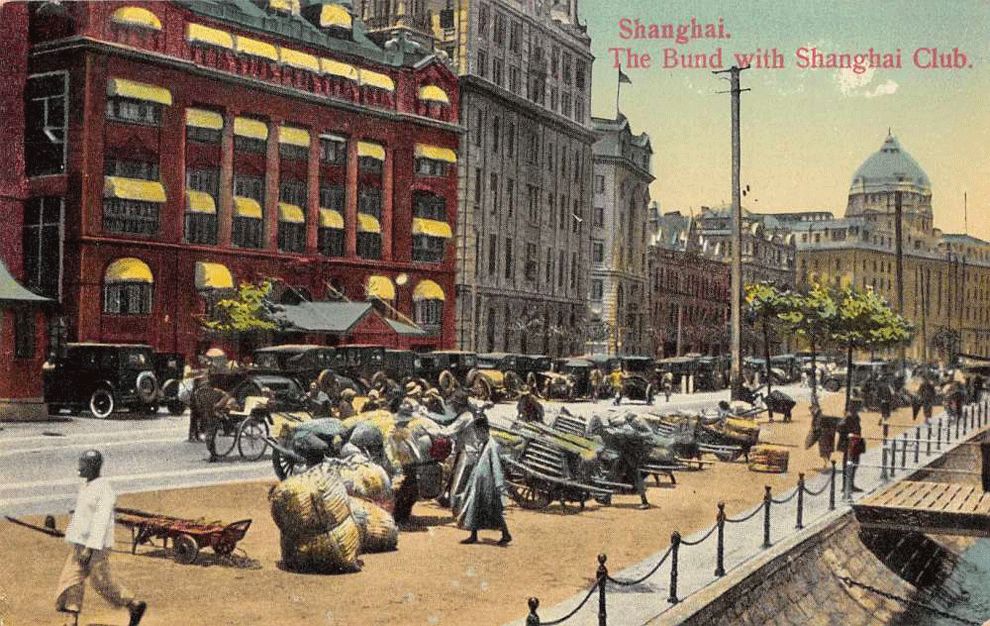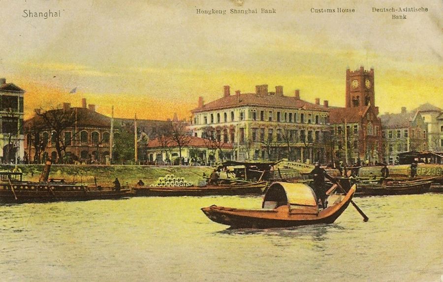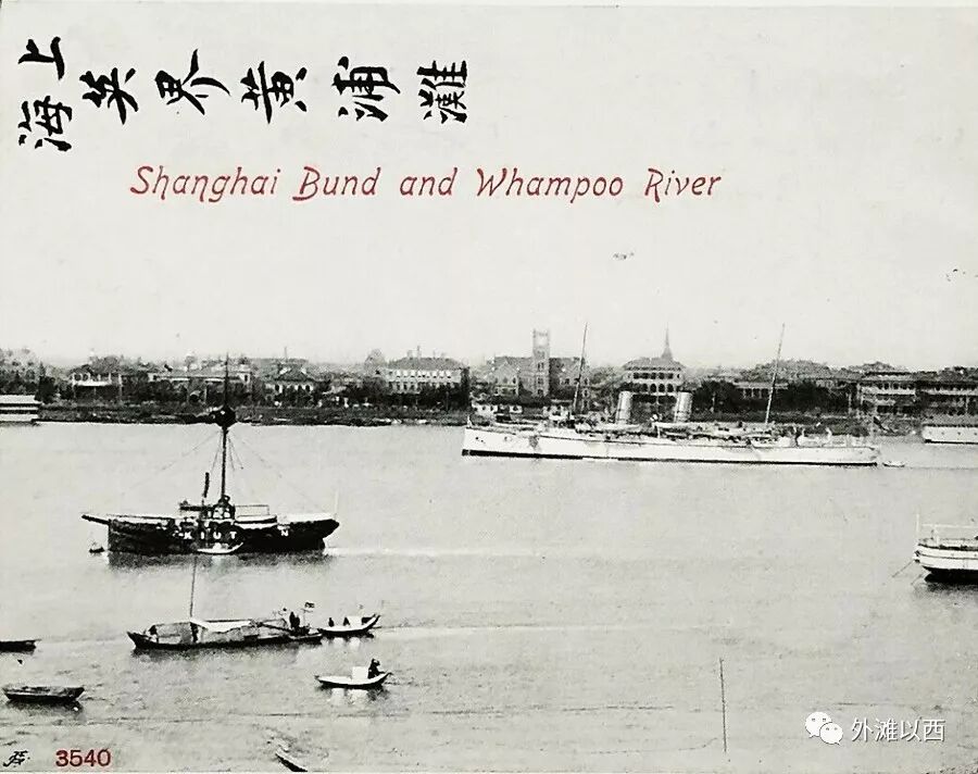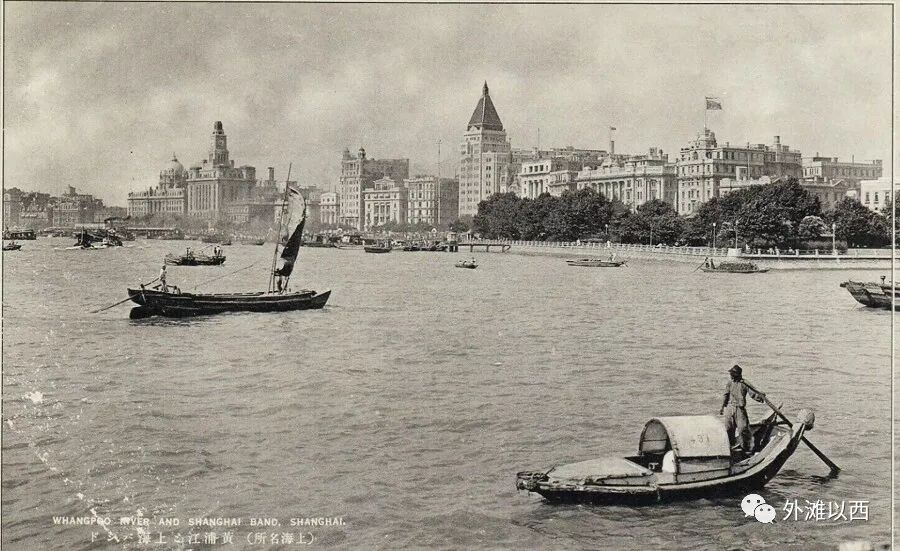 这一段已经被专家写出了很多专著,我们还是以八卦为主,看图为主,老照片、老明信片,彩色修版很神奇。图片上外滩可关注的细节很多,如看到舢板,纯中国读音进入英语,舢板=Sampan,有魅力吧,还有大班=Taipan 。好了,回看一眼法界外滩,我们进入到英界外滩。