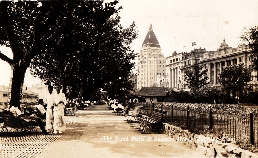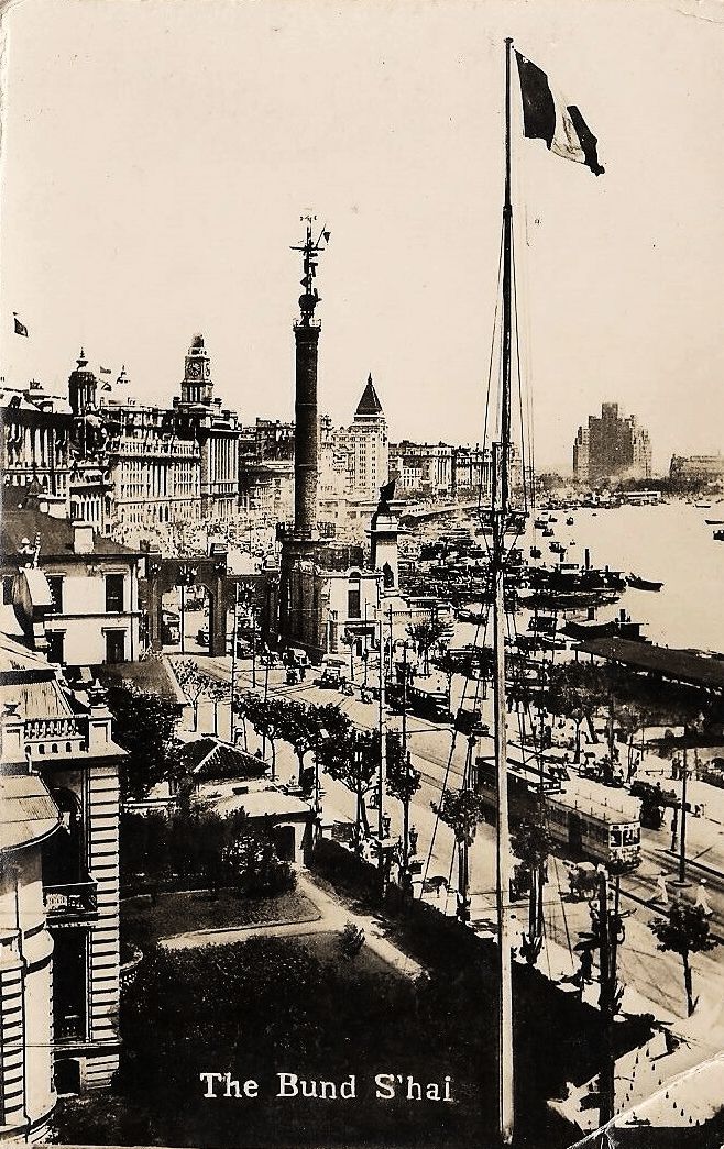 作为专业摄影师,那就必须攀登上外滩天文台,从高处将欧战胜利纪念碑突出在前景,背后是外滩一线壮观的建筑群,下图拍摄时间很容易知道,1936年至1937年,那时候中国银行总行大厦正在建造。1937年8月13日第二次淞沪战争打响,租界成为重要避难地,直到1941年12月太平洋战争爆发,“孤岛”不再。
