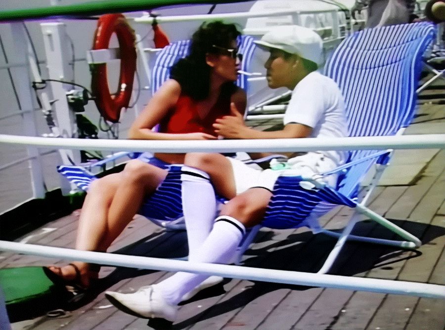 如下,在邮船甲板上,与方鸿渐暧昧点烟的那个女生叫盖丽丽(饰演鲍小姐),下了船之后就不见戏份了。