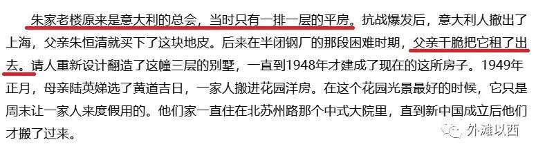 这是朱恒清女儿朱文琪的回忆录,我们今天需要给划了红线那两行做点历史补白,目前查阅到的资料显示,1930年后的整个十年,这里是旅居上海的意大利人重要的社交场所。很巧,我们找到了一篇博文专门介绍了意大利总会(赵主教路),写作者使用意大利语,借助谷歌翻译,我们大概清楚了此地发生了什么事情。上文中的“抗战爆发后”应改为“太平洋战争爆发后”;意大利人也没有撤出上海,人家搬到大西路,如今的延安西路、南京西路到底的地方。
