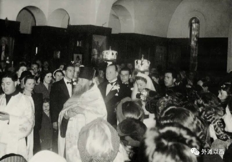 回到圣母大堂,一对新人步入婚姻殿堂。这一对,在当时的上海俄侨社区很有名,男生叫亚历山大·维丁斯基(Alexander Vertinsky),女生叫莉迪亚·齐尔格瓦(Lydia Tsirgvava),郎才女貌,男生是著名歌手,男生大女生34岁(1942年4月26日成婚),女生2013年去世,享年90岁。