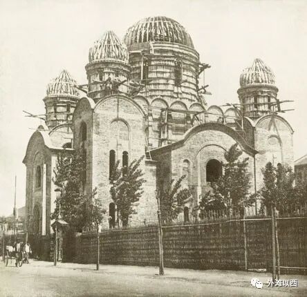如下也是伯恩斯拍摄的吗?以前未在其图册里(收录artsandculture.google)发现,拍摄机位基本一致,这张照片是从一篇报道俄罗斯人在上海的PPT里找到。由此,我们还找到了新鲜的圣母大堂”旧影“,有些清晰度和取景角度不错。