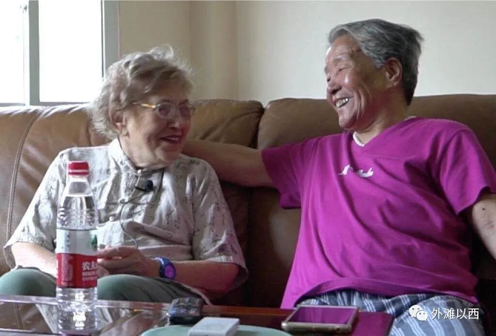 如下的照片很魔幻,丽莲·威伦斯(《一个犹太人的上海记忆》作者)回到了她曾经居住的瑞华公寓某室,与现住户交谈。