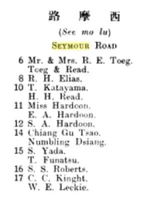 一本本中国名人录,记载的内容很格式化,出生年月、何时到中国、供职单位、服役经历、参加哪些俱乐部活动,单位地址和家庭住址以及老家地址。这些信息看看简单,但可以从其中分出朋友圈层,如我们发现当年以福开森99号麦格雷戈为中心,周围全是上海跑马会的资深马友;如范园,以银行家居多;如延庆路、华亭路口,美孚洋行上海分行的高管们的世外桃源....