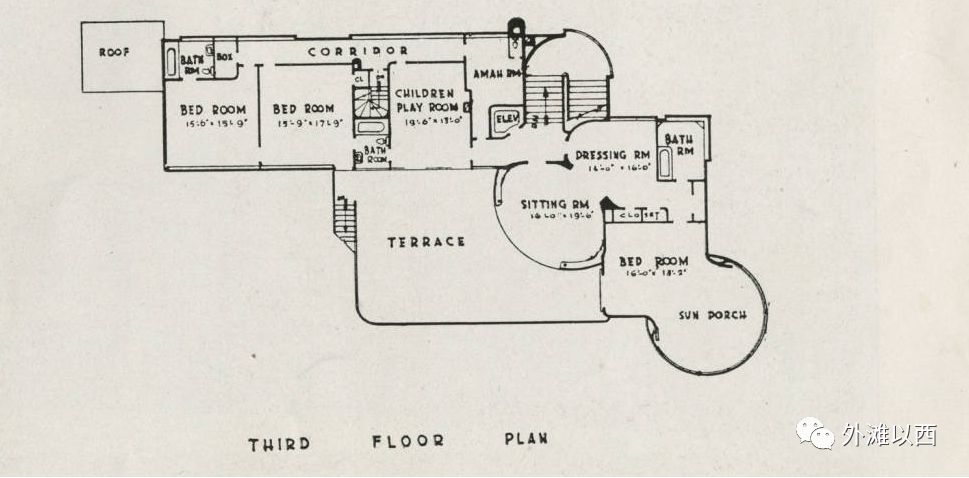 上邬大师手绘平面图,从Ground Floor 到 Third Floor,英国路数,地平层叫一楼,一楼就是二楼,二楼即三楼,三楼算四楼,每层有大平台。现代式大宅门。
