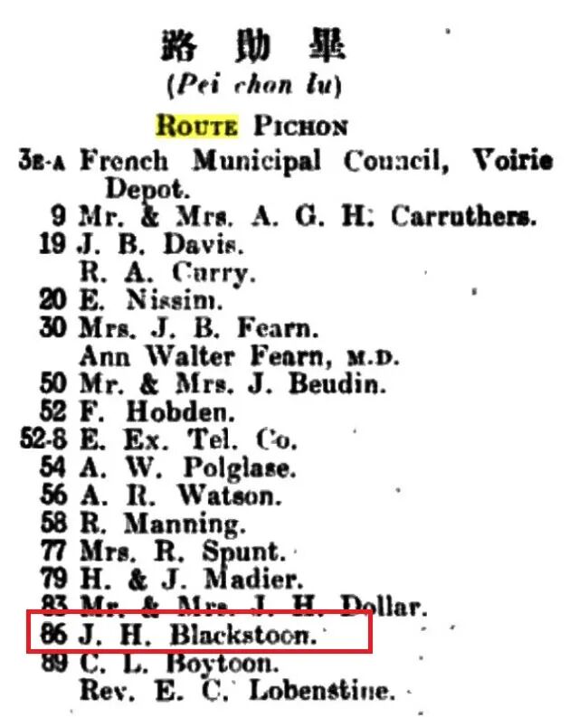 THE BLACKSTONE APARTMENTSSource:The Shanghai Sunday TimesPublication Time:1925 - 2 - 22如下,1938年1月版字林西报行号录记录,又出来一个勃司东家族成员。看名字应该是宋合理的兄弟。