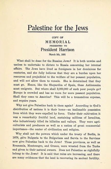 William Eugene Blackstone(1841-1936年),史学家都会称呼他为:Father of Zionism,犹太复国主义之父,他因在1891年和1916年的两次发起关于巴/勒/斯/坦/归/还/给犹太人请/愿/书/签/名而闻名。史称:Blackstone Memorial。