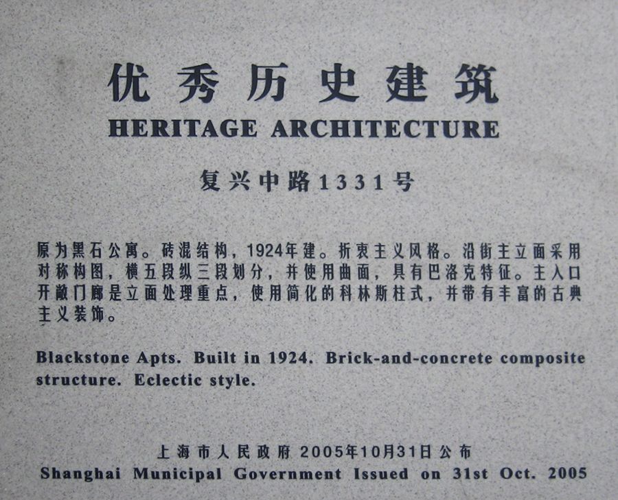 汾阳路20号曾是犹太复国主义者根据地。他们会将黑石公寓和Blackstone Memorial联系起来,鼓舞人心。