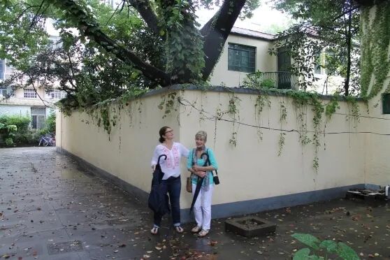 Lara de la Harpe, and her mother exploring an old home in 2016(findingoldshanghai.wordpress.com)她和她母亲2016年探访安福路249弄老屋。