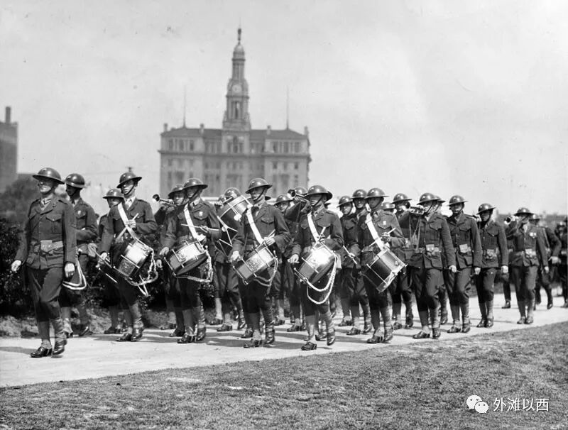 美国海军陆战队第四团在上海有自己俱乐部,其事迹和图片也被记录在自己专用网页里,以后会说说,下图,陆战队第四团(4th regiment of Marines)鼓乐队在跑马场。