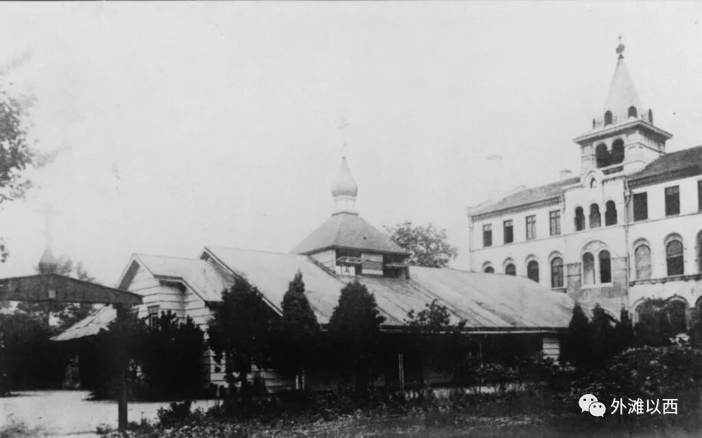 下图,襄阳北路、新乐路,教士公寓还在,没了塔尖顶,东正教圣母大堂洋葱头顶上也缺了点啥。
