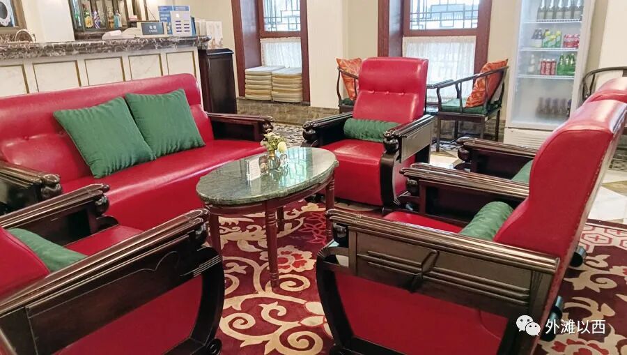 东湖宾馆有加层,阳台也安装了玻璃窗,迎宾廊也是加建的。窦老师介绍说,迎宾廊的吊灯是老货(本来在室内),与沙逊的华懋饭店(如今的和平饭店)装饰主义风格的吊灯一模一样。