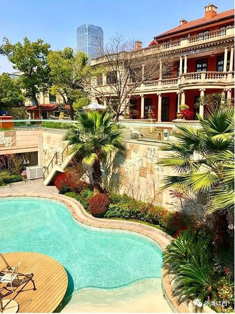 我们看到2018年以后,红枫医院撤离,沿淮海中路街面房全部推倒,那个缓坡楼顶变成了平顶。下图,游泳池边的带着全家人欢笑的场景消失了。