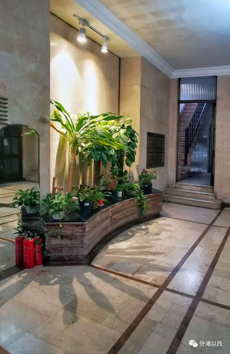 此大楼保养得当,门厅不大,但各种老式铜件历久弥新。
