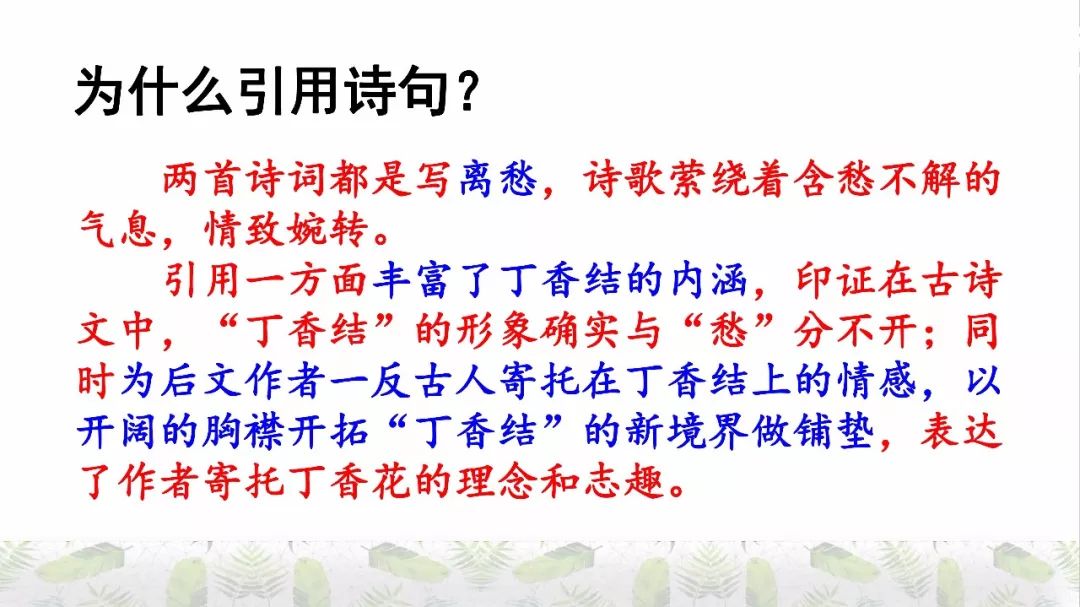 3.说说文中引用古人关于丁香结的诗句的作用。