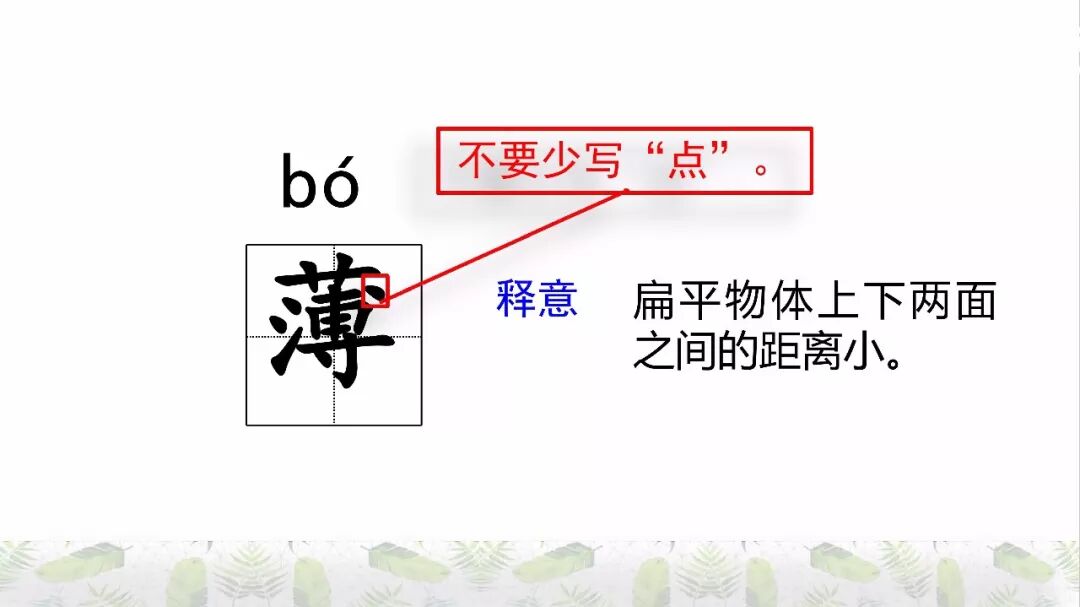 薄báo(薄片)bó(单薄)bò(薄荷)