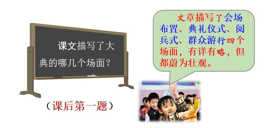 1.文章主要写了哪几个场面,连起来简要说说开国大典的过程。
