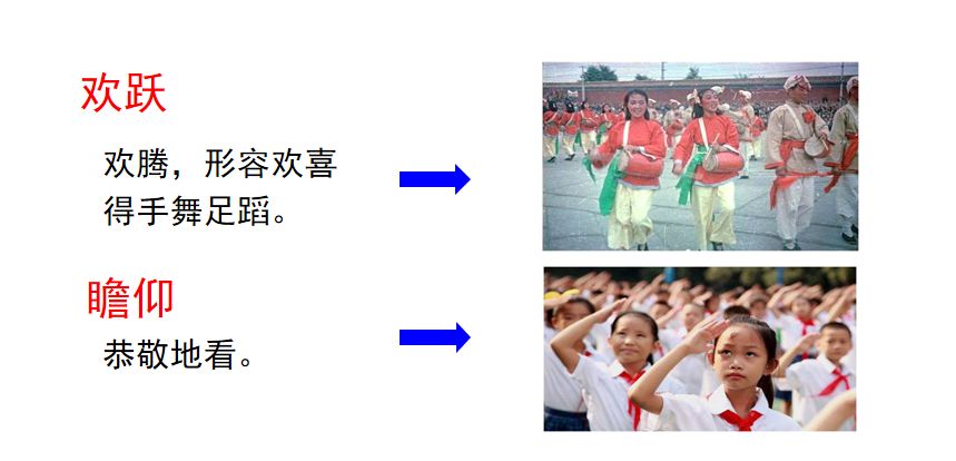 2、揣摩下列语句,感受开国大典现场的氛围。