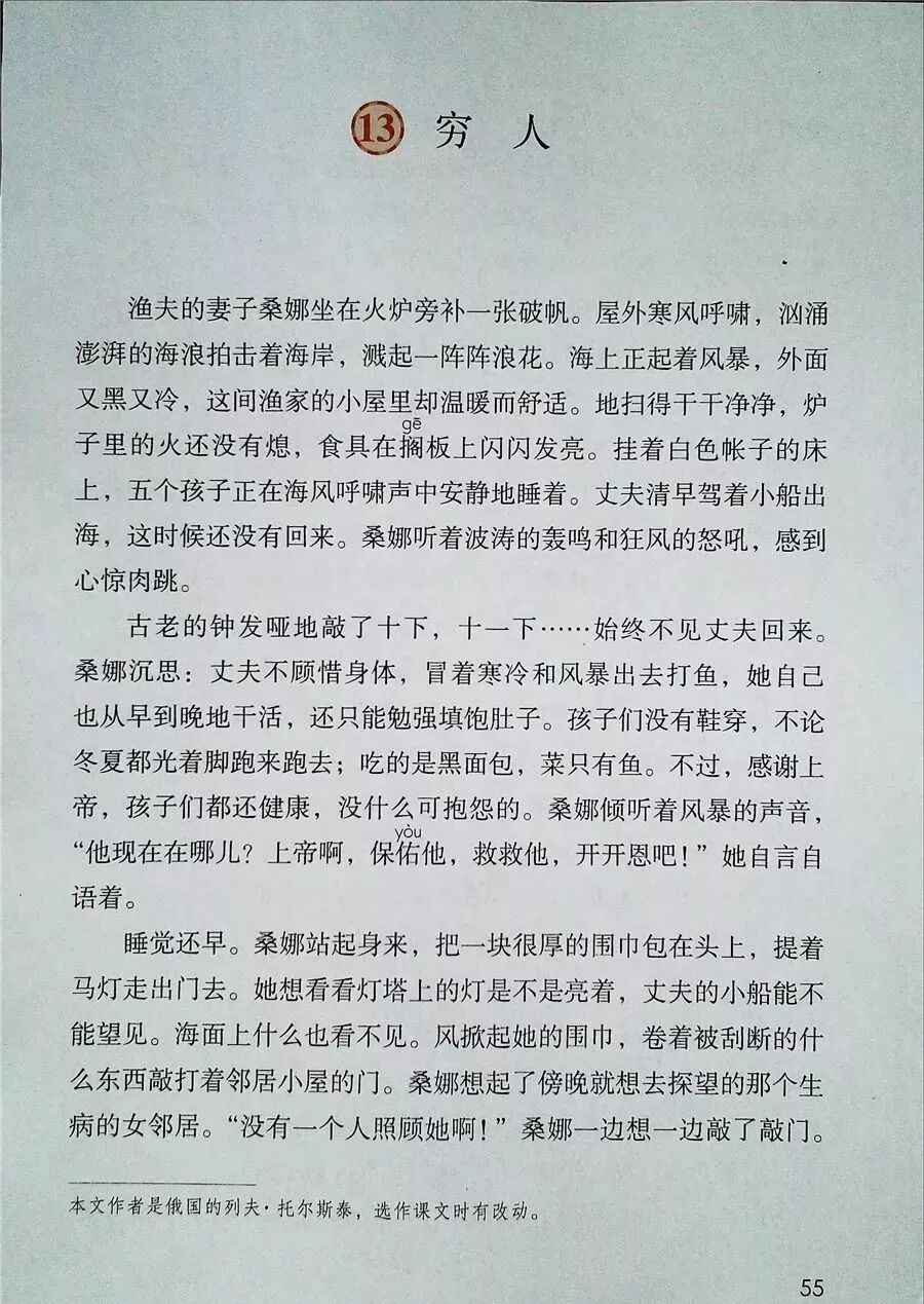 一、俄 列夫·托尔斯泰 短篇小说 桑娜与渔夫主动收养已故邻居的两个