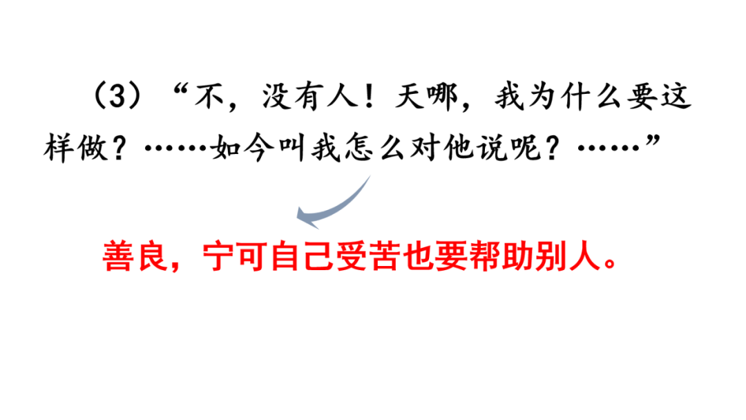 2.文中三个语气词,表达了人物不同的内心,请对它们的理解写下来。