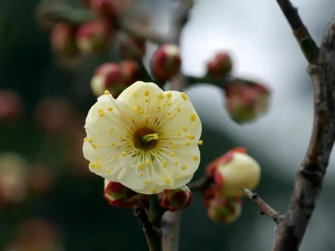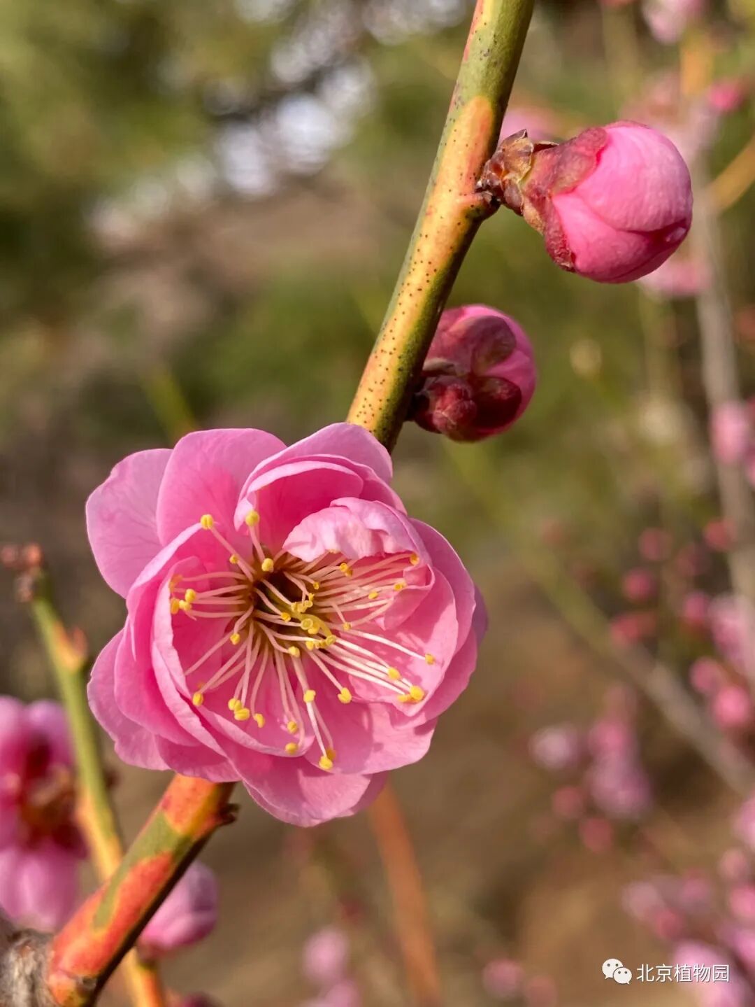 梅园目前已收集了十个品种群(除黄香品种群)的近千株梅花。由于近期温度偏低,现早花品种大部分还处在观赏期,中花品种渐入佳境,晚花品种含苞待放。预计整体观赏期可持续二周左右。