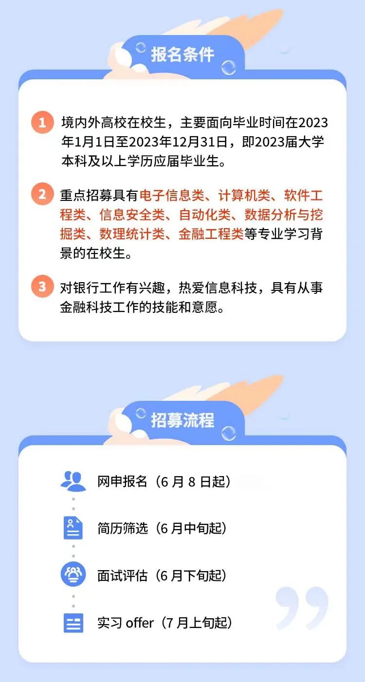 实习信息 | 中国工商银行远程银行中心2022年暑期实习招聘