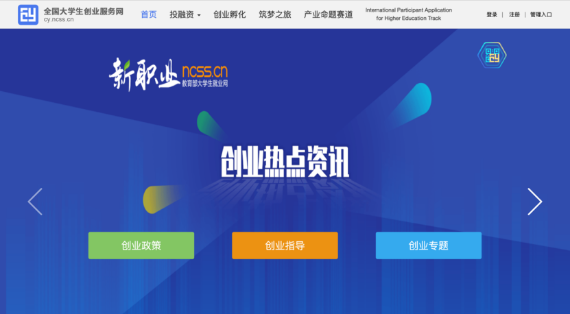点击顶部导航“创业服务”,可进入全国大学生创业服务网页面,查看更多创业信息。