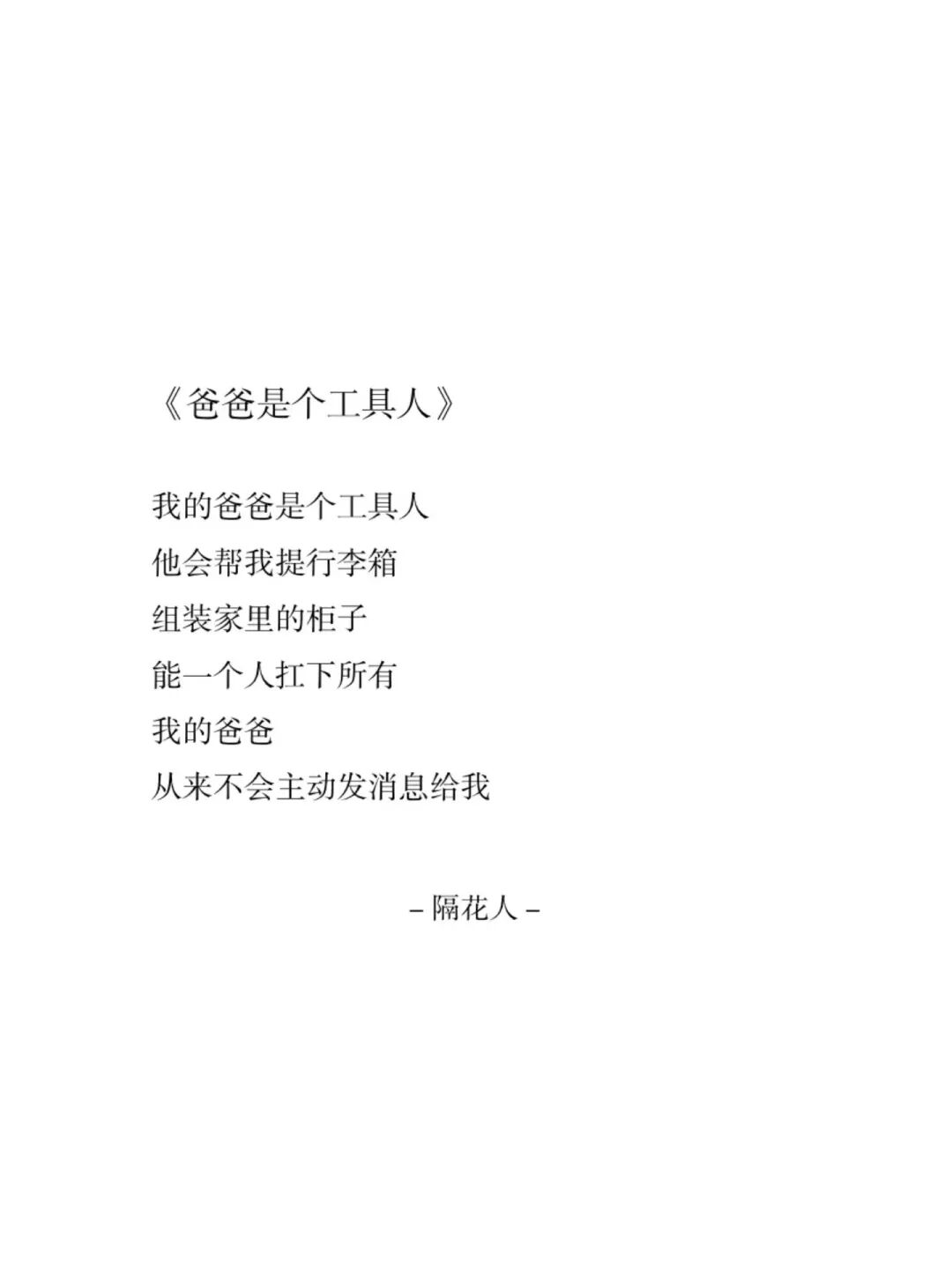 因此,隔花人也从不吝啬于用文字来表达对家人的爱,写了一系列给家人的诗: