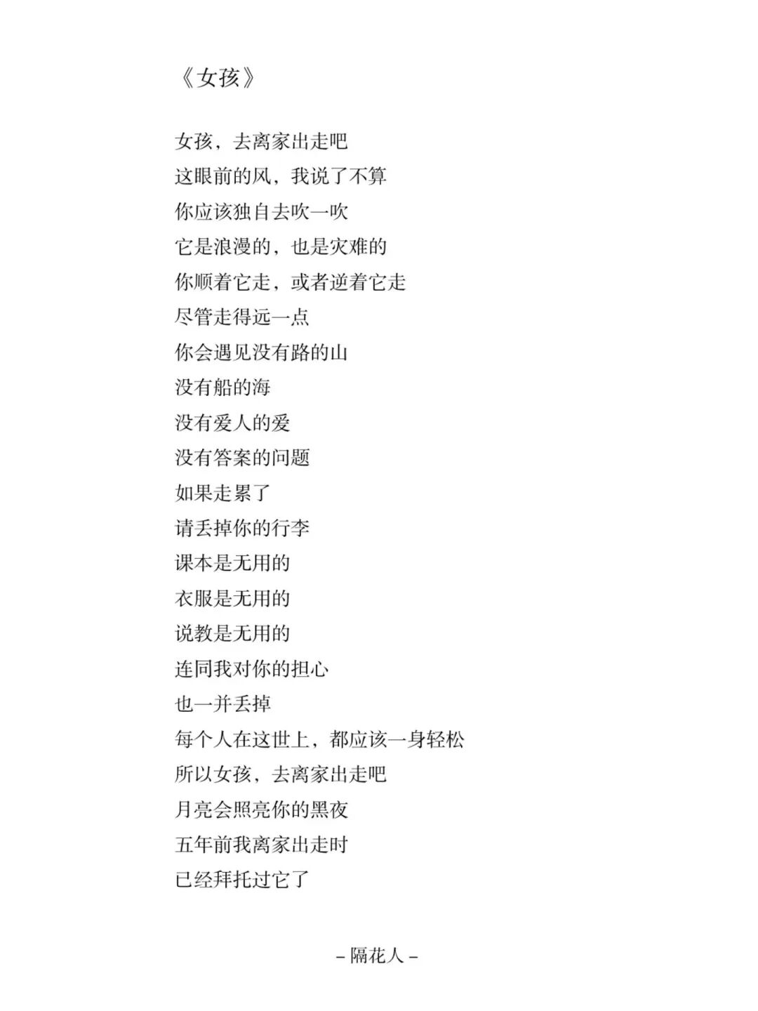 和隔花人说话,她为你写诗,评论区留下你的故事。