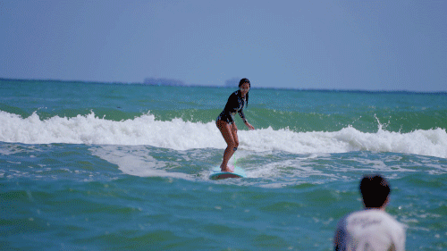 世界上没有两道相同的浪,每一次冲浪,都像在打开新的感官盲盒,引诱着佳佳一次一次地“乘风而起”。至于有没有计划往大pro进阶,佳佳笑着举了个例子:“同样是‘横冲直撞’的极限运动,冲浪和滑雪还有点不同。滑雪的雪道和抛台永远是那样,能达到什么水平,取决于你怎样去训练、怎么去磨炼自己的能力。但冲浪的随机性很大,你永远冲不到一模一样的两道浪,所以我没有一个明确的目标,或是要做出什么厉害的动作,随缘就好。正是没有目的性的压力,我才会更喜欢这件事。”
