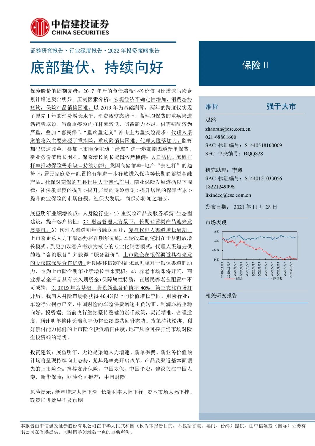 研究报告名称:《2022年保险投资策略报告:底部蛰伏,持续向好》