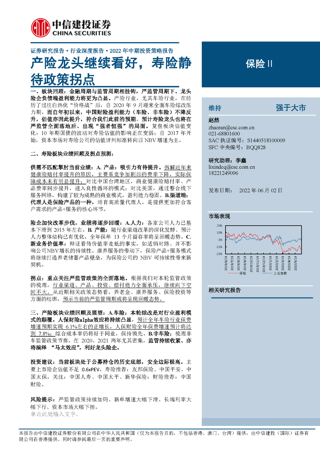 证券研究报告名称:《产险龙头继续看好,寿险静待政策拐点》