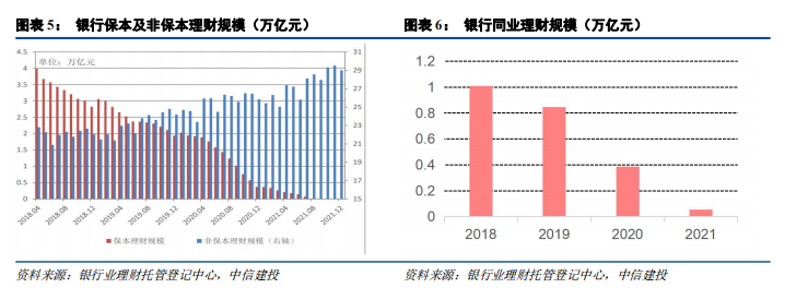 银行方面,资管新规发布以来保本理财产品及同业理财规模持续压降,净值化转型进度不断提升。