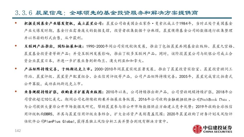 近年来随着金融体系的不断完善和财富管理行业的不断发展,解决方案公司围绕投资者关键流程为其提供一系列数据及解决方案从而为投资决策赋能,业务链条不断延伸,收入质量稳中有进。
