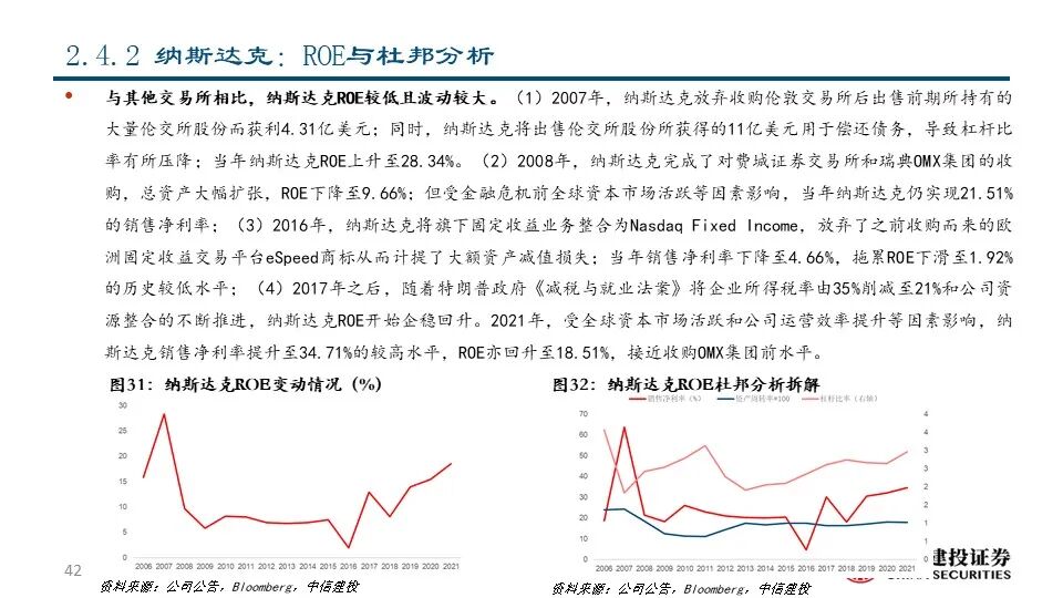 ②纳斯达克(NDAQ US Equity):公司成立于1971年,是世界上第一家电子交易所和领先的交易所集团和市场技术提供商,市值达到293.16亿美元;公司交易技术领先,解决方案板块占比较高;2021年公司实现净营收34.20亿美元,同比+17.81%;其中包含企业平台、投资情报和市场技术分部在内的解决方案板块共实现收入21.52亿美元,占比达62.92%。