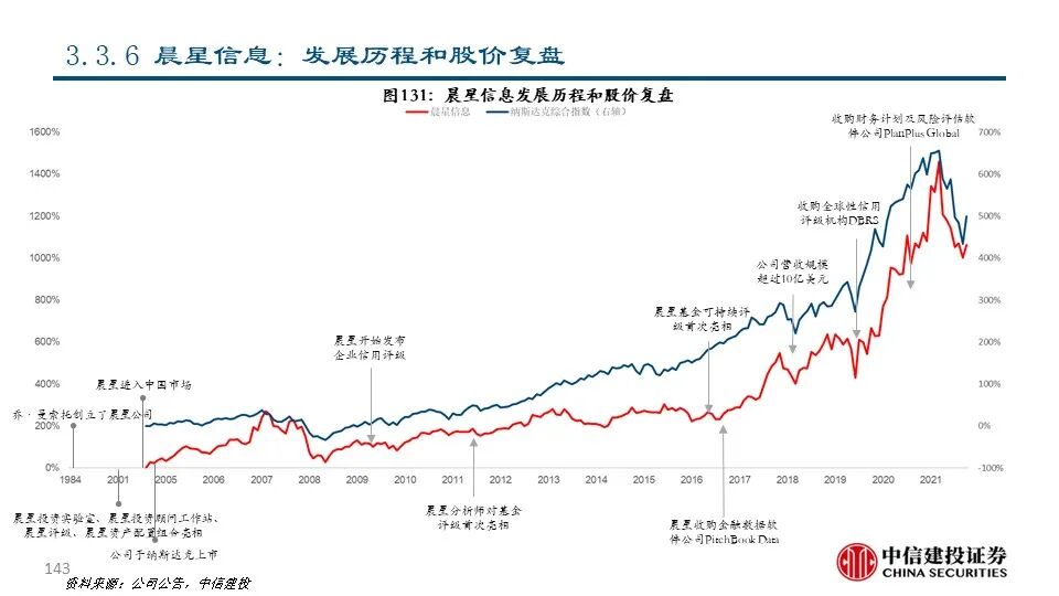 ⑥晨星信息(MORN US Equity):公司成立于1984年,是全球领先的基金投资服务和解决方案提供商,市值达99.07亿美元。公司积极把握美国基金产业爆发契机,通过整合基金公司和基金信息成为全球领先的基金投资服务提供商,并积极拓展信用评级、风险管理等领域。2021年公司实现营收16.99亿美元,同比+22.30%。其中授权客户数据、研究以及平台服务产生的授权使用收入占比66.60%,是公司的主要收入来源。