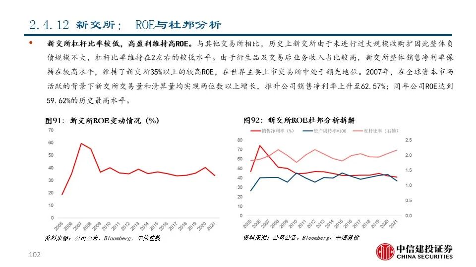 我们坚信,长期来看,交易所和解决方案公司商业模式优,盈利能力强,是非银与金融科技大板块值得核心关注的行业。1)过去10年,证券及商品交易所板块和金融信息服务板块回报率达161.92%,显著优于摩根士丹利国际资本指数的113.83%和金融板块整体的64.14%;2)近年来交易所和解决方案公司的盈利水平和估值水平均不断抬升,彰显出市场对其盈利能力的充分认可和给予的较高溢价水平。
