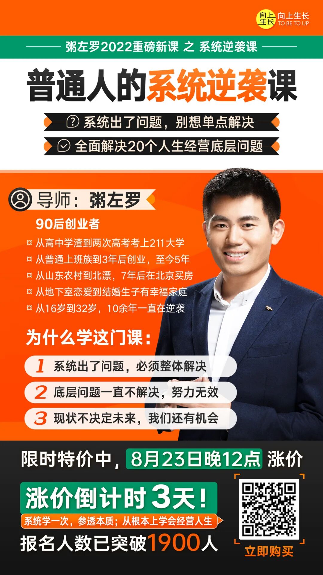 2. 改变现状和逆袭人生都有相应的方法论和本质规律,这门课程,每节课都有5000-10000字的干货,彻底讲透人生经营的20个底层问题。