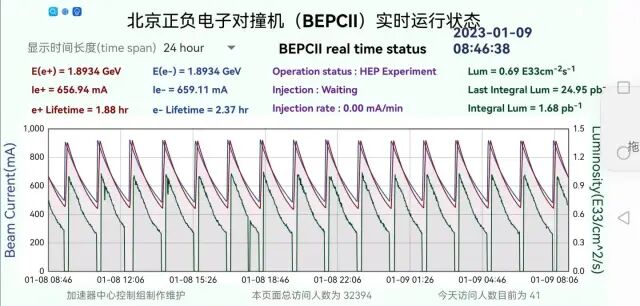 顺着前文提到的实景拍摄说开去,剧中还原度极高、符合科学实验的细节,都有些啥?知乎网友@海伯利安和剧中的杨冬是“同行”,北京谱仪国际合作组的前成员。他提到,杨冬手里那份从良湘加速器上拿到的粒子物理实验结果,几乎可以以假乱真。因为那就是北京谱仪II(北京正负电子对撞机上的通用磁谱仪)的运行状态报告,顶部圈出部分即“BES-II Run Status Report”。从右侧的红圈圈里可以看到,正电子的能量是1855.464MeV,能散2365keV。实验结果下半部分的图表,显示了加速器里面正负电子的束流强度随时间变化的曲线。△1月9日北京正负电子对撞机的运行状态