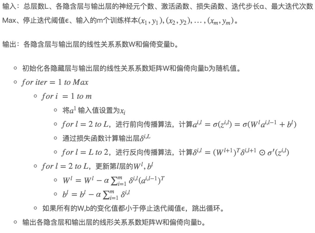 对DNN损失函数用梯度下降法进行迭代优化求极小值的过程,便是我们的反向传播算法(Back Propagation,BP)。
