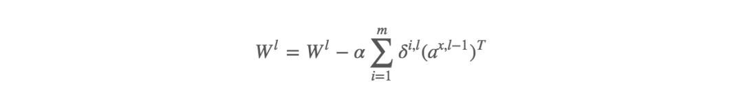 如果使用上式的损失函数,进行反向传播算法时,流程和没有正则化时的反向传播算法相同。区别在于进行梯度下降时,W更新公式会进行改变。在深度神经网络之反向传播算法中,W的梯度下降更新公式为